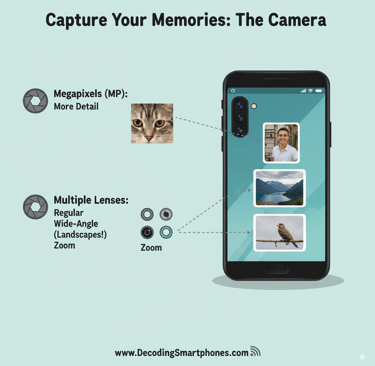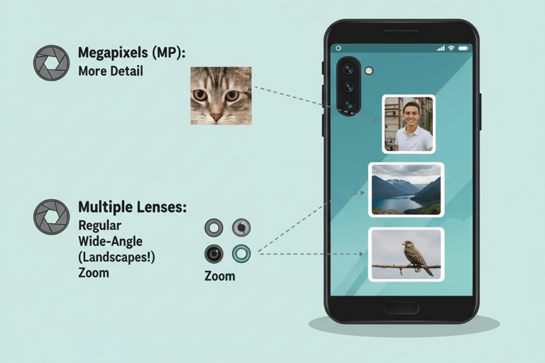 Multiple Lenses: Many phones now have several cameras on the back – one for regular shots, one for wide-angle views (great for landscapes!), and sometimes one for zooming in. This gives you more creative options!