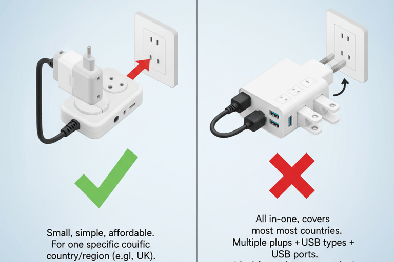 Go Universal: If you travel often or plan to visit multiple countries, a good universal travel adapter with USB ports is a game-changer.